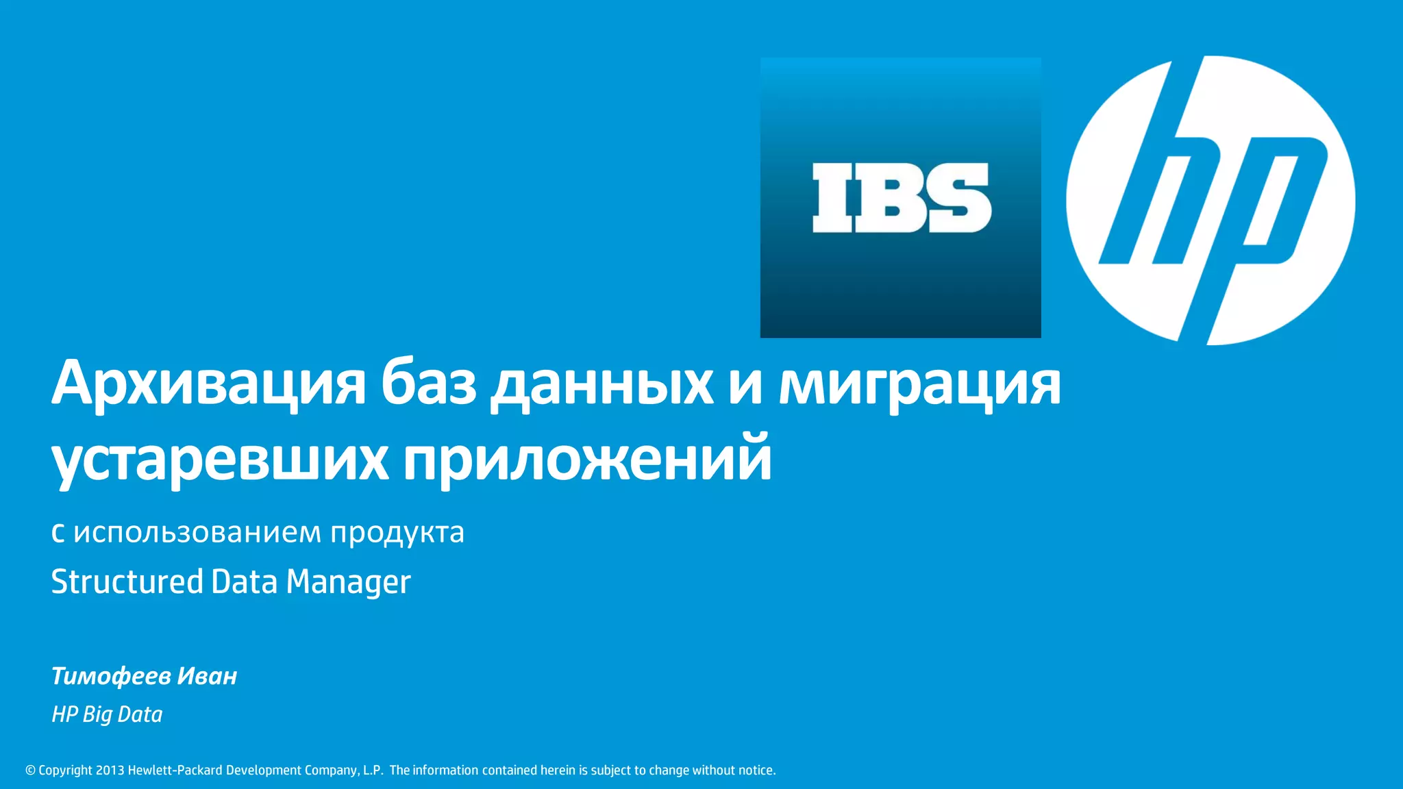 Документ описывает архивирование баз данных и миграцию устаревших приложений с использованием продукта HP Structured Data Manager. Он рассматривает проблемы роста баз данных, включая увеличение затрат и сложности поддержки приложений, а также стратегии управления архивными данными. Также представляются примеры успешного внедрения архивирования в различных компаниях и основные возможности решения.