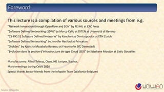 1) The document provides a summary of a lecture on Software Defined Networking (SDN) and its history and components.