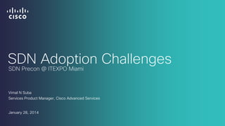 The document discusses the challenges and myths surrounding Software-Defined Networking (SDN) adoption, highlighting that only 15% of organizations have implemented SDN. It emphasizes the strategic and functional barriers that need to be addressed, as well as the importance of professional services in facilitating smoother adoption. The key takeaways include the need for clear SDN goals, breaking down organizational silos, and assessing vendor expertise beyond technology attributes.