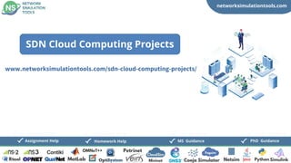 The document discusses the benefits and recent research ideas related to Software Defined Networking (SDN) in cloud computing projects. Key advantages of SDN projects include dynamic traffic management, quick policy updates, and minimized downtime and costs. It also outlines innovative research areas such as workload slicing, DDoS attack detection, and resource allocation.