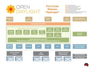 This document introduces software defined networking (SDN) and network functions virtualization (NFV) concepts. It discusses challenges with traditional networking and how SDN and NFV address these by decoupling the control and data planes, making the network programmable through APIs, and virtualizing network functions. It then provides examples of open source SDN platforms like OpenDaylight, Open vSwitch, and OpenStack that enable building virtual networks and service chains.