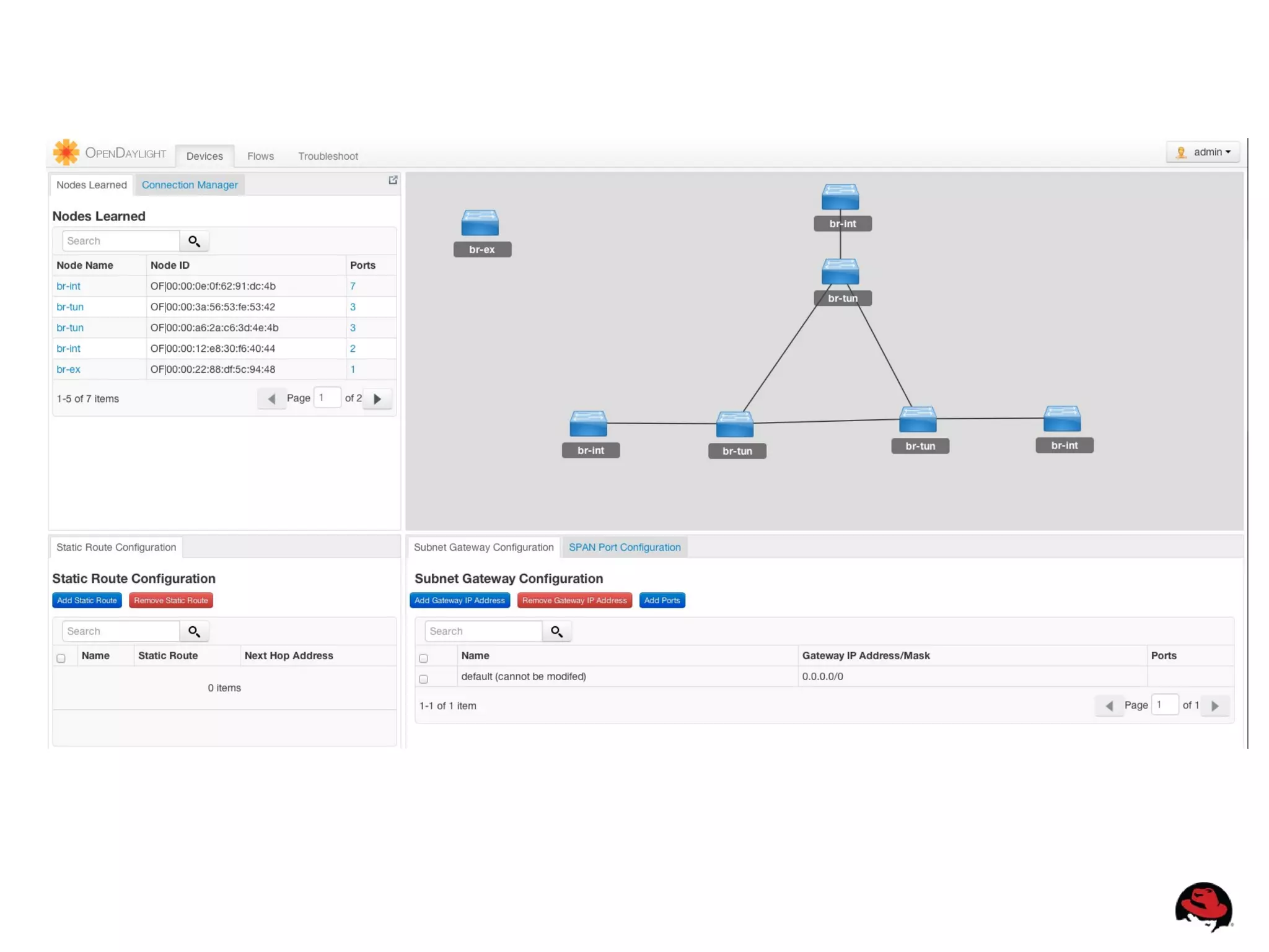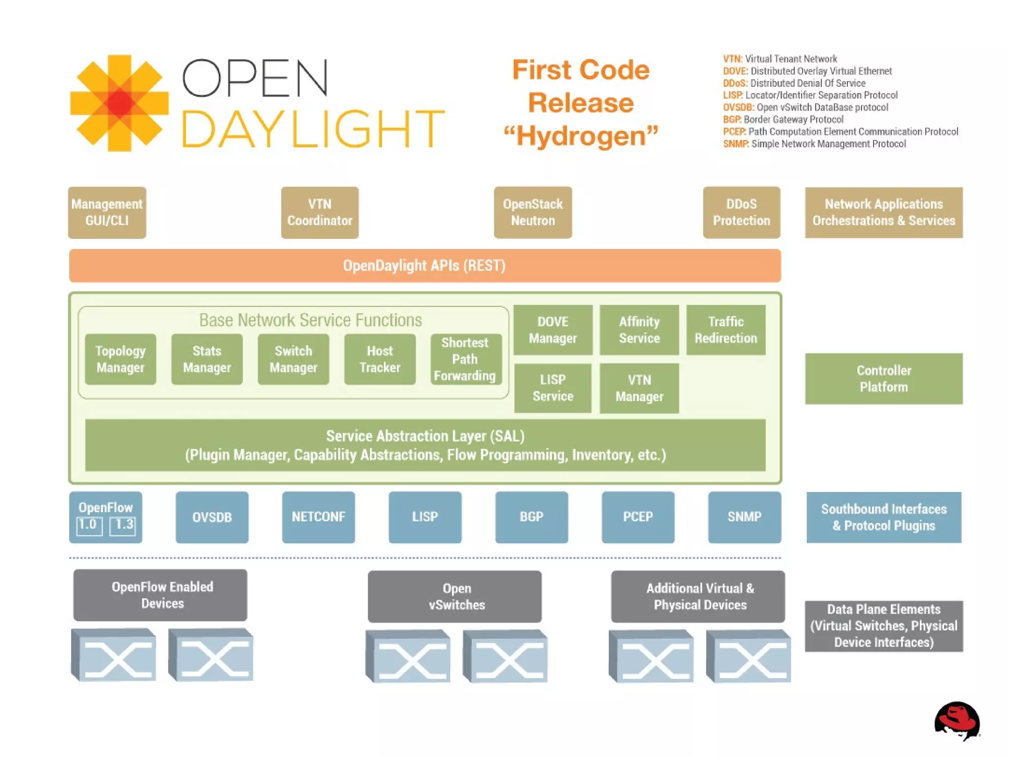 Highlights OpenDaylight’s mission and Open vSwitch capabilities as essential tools in implementing SDN and managing overlay networks with advanced features.