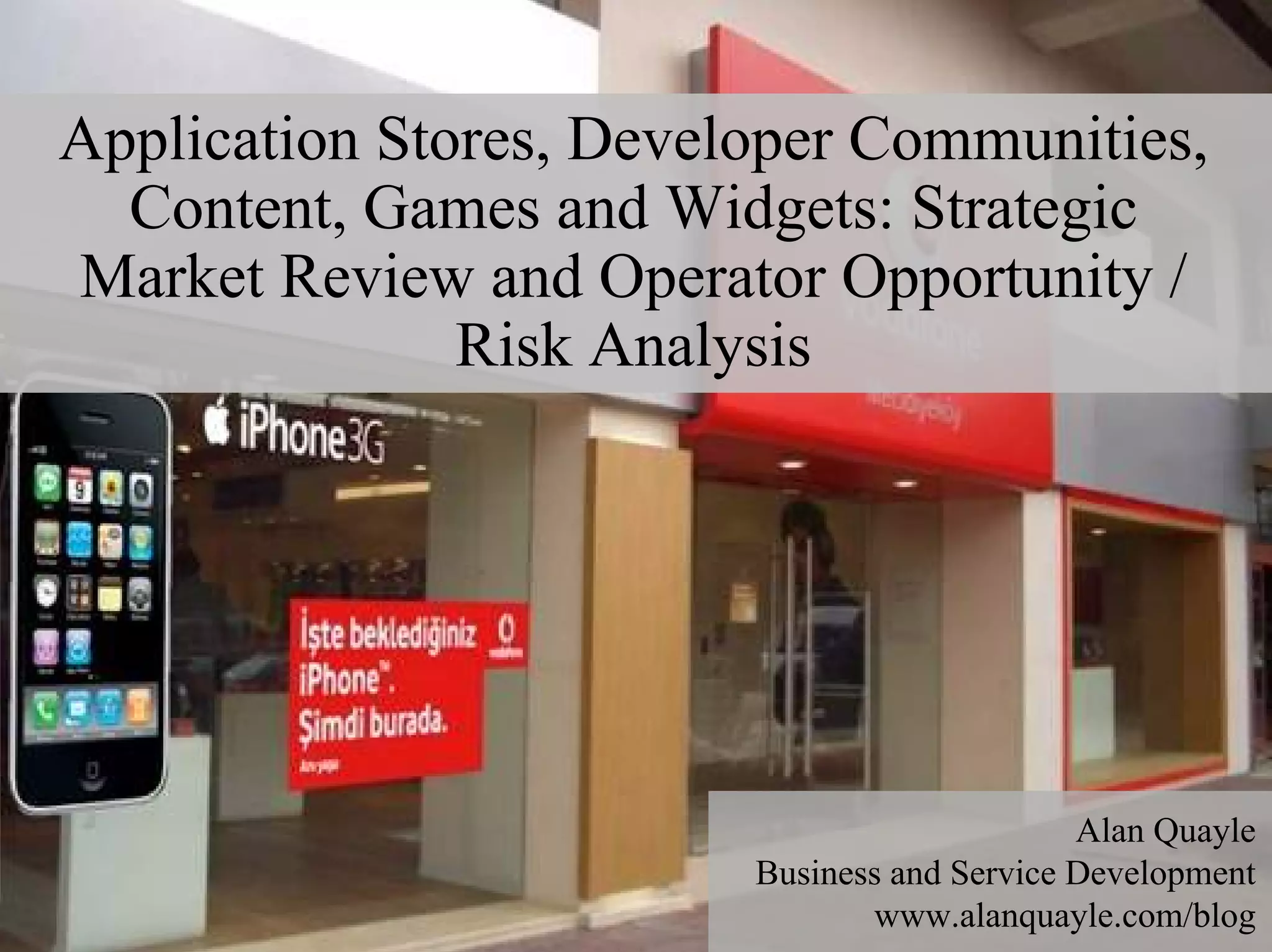 The document provides a strategic market review and analysis of opportunities and threats in the telecom industry, focusing on application stores, developer communities, and content delivery. It discusses the impact of open initiatives and APIs on operator revenue streams and highlights key case studies from various telecom operators. The document concludes with insights on the evolving landscape of mobile applications and strategies operators need to adopt to remain competitive.