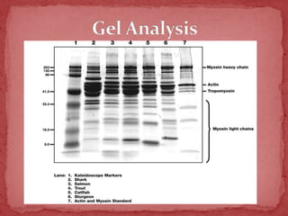 Sodium dodecylsulphate-polyacrylamide gel electrophoresis (SDS-PAGE) is a method used to separate proteins by size. It involves extracting proteins from a sample, solubilizing and denaturing the proteins using SDS detergent and heat, separating the proteins on a polyacrylamide gel based on their size and charge, and staining proteins for visualization and analysis. Smaller proteins move faster through the gel towards the positive electrode. SDS-PAGE allows determination of protein size, identification, purity, and quantification.