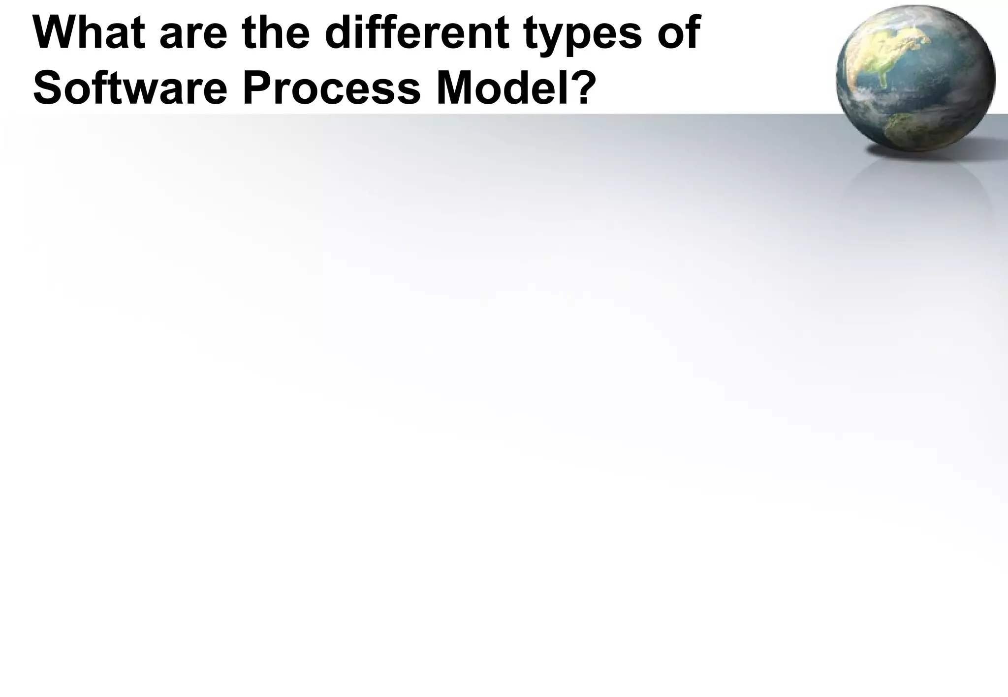 1) The waterfall model which is linear and sequential with distinct stages of requirements, design, implementation, testing, and maintenance.