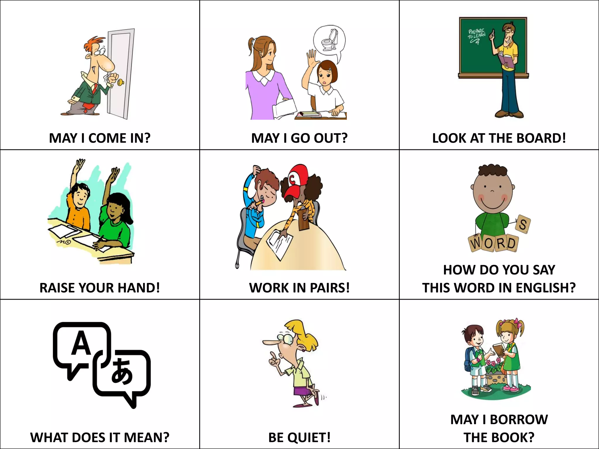 This document provides classroom language examples and lessons on using English. It includes examples of asking and giving permission using modal verbs like "may" and "can". Imperatives for telling someone what to do are also explained. Exercises match pictures to descriptions and choose the correct modal verb usage in sentences. Classroom language for asking permission and making requests is given. The document ends with a group activity to design classroom rules and present them.