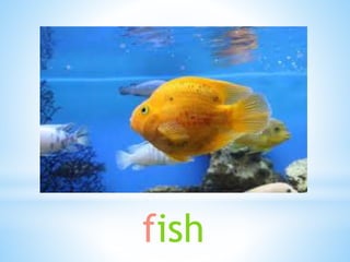 This document lists various sea animals including fish, seahorse, dolphin, starfish, octopus, seal, and jellyfish. It also mentions the seahorse and fish as well as the starfish and dolphin.