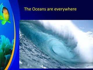This document created for Riana Boonzaier in January 2014 provides a visual guide of various creatures that live in and around the oceans, including fish that swim in schools, sea horses, sea dragons, sea anemones, starfish, octopuses, seagulls, penguins, dolphins, sea lions, sharks, whales, crabs, hermit crabs, barnacles, sea urchins, and lobsters.