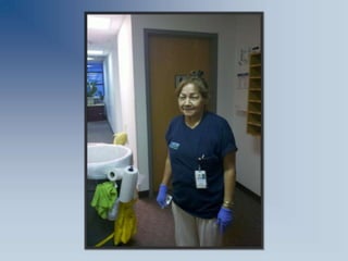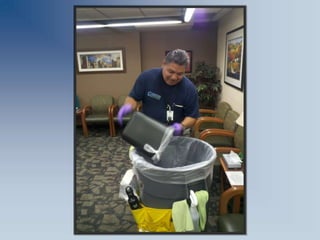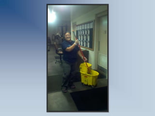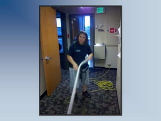 This document outlines principles of service excellence and devotion for an organization, including being honest, consistently serving customers, following through on commitments, and maintaining a positive attitude. It discusses the mission of creating clean and healthy environments through continuous improvement and recognition of excellence. The document concludes by thanking attendees for joining and encouraging them to network with others at the event to learn their stories.