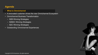 The document discusses the concept of omnichannel, defining it as a synchronized operating model that offers a seamless customer experience across all company channels. It highlights the importance of understanding the evolving expectations of consumers, who are increasingly multichannel, informed, and demanding personalized engagements. Additionally, the text elaborates on the necessary business transformations and strategies for both B2B and B2C sectors to adapt to these changes and enhance customer interaction through integrated technologies and marketing efforts.