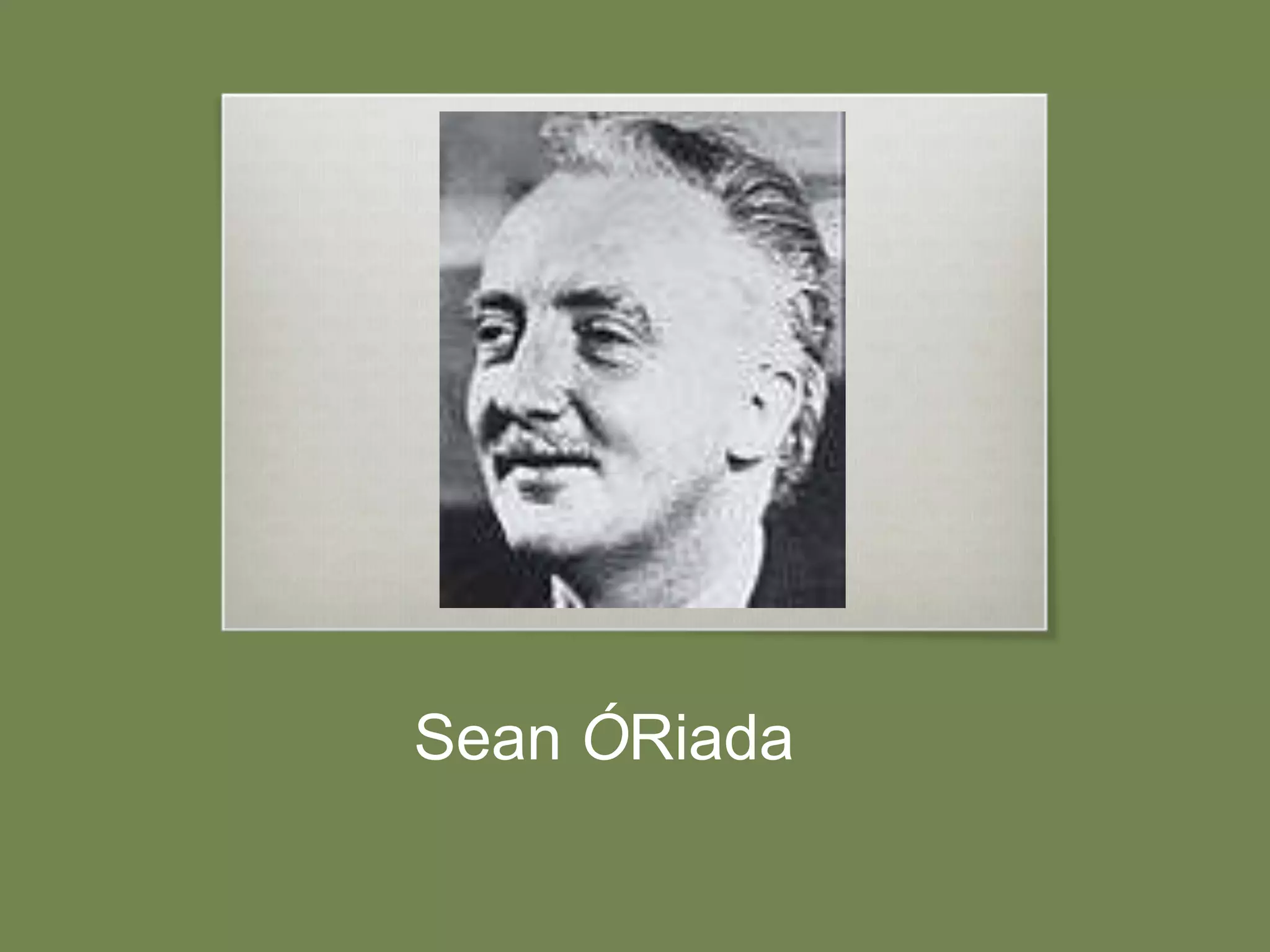 Sean Ó Riada was one of the most important figures in Irish music in the 1960s. He studied music at University College Cork, obtaining a degree in 1952. In 1959, he composed music for the documentary "Mise Éire" which brought him national recognition. He helped develop Irish music beyond traditional céilí bands by forming the group Ceoltóirí Chualann, bringing classical techniques to traditional Irish music.