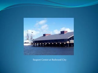Seaport Center in Redwood City offers lunch tables with scenic views. The location provides an outdoor space for employees to eat while taking in waterfront sights. In just a few sentences, the document conveys that Seaport Center has lunch areas by the water that allow workers to enjoy their break outside near the bay.