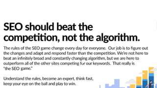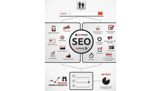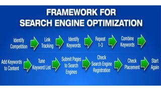 The document discusses search engines, their functionality, and the importance of search engine marketing and optimization (SEO) strategies. It outlines key SEO concepts, including on-page and off-page optimization factors, Google algorithm updates, and practical tips for improving website rankings. Additionally, it emphasizes the significance of quality content and effective keyword usage in enhancing online visibility and traffic.