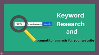 The document discusses the fundamentals of SEO, focusing on Google's ranking algorithms and factors that influence search results, including trust, authority, and relevance. It emphasizes the importance of keyword research and strategic content optimization to achieve higher rankings on search engines. Additionally, it outlines the differences between on-page and off-page SEO, and provides insights into keyword types and competition analysis to drive web traffic.