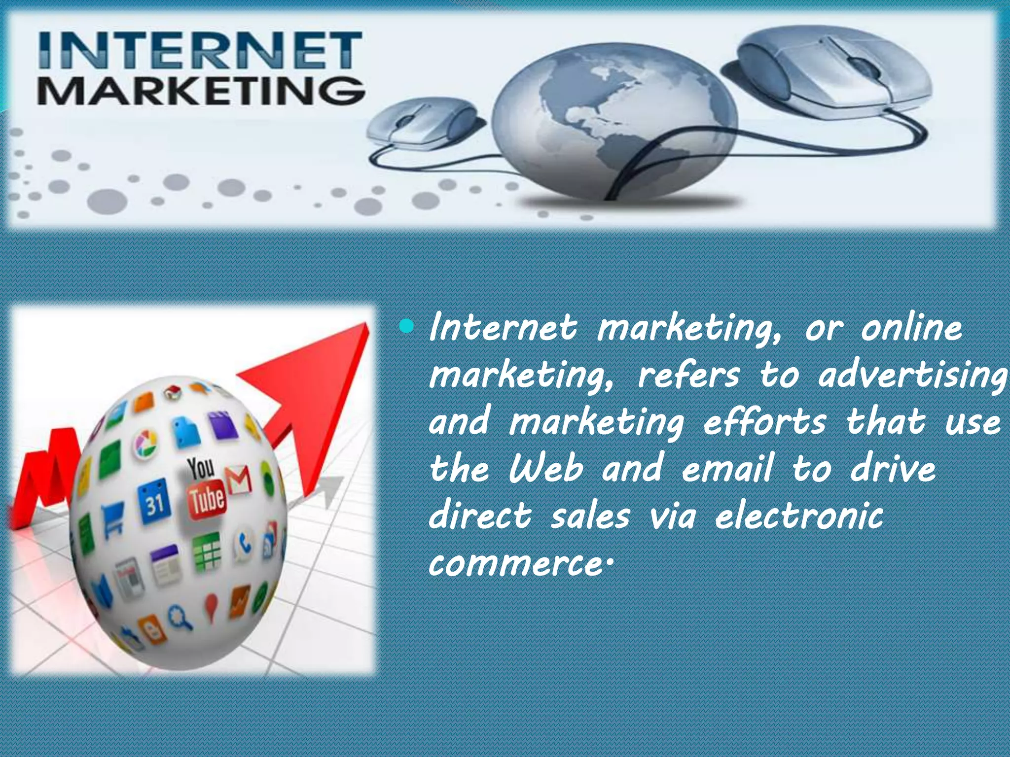 The document discusses internet marketing, highlighting its advantages such as global reach, cost-effectiveness, and 24/7 availability. It explains search engine optimization (SEO) techniques, including on-page and off-page SEO, and the distinction between black hat and white hat SEO. Additionally, it lists various computer courses available, covering programming languages, web design, development, and SEO strategies.