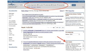 This document provides guidance on developing a simple search strategy by breaking questions down into PICO elements (Population, Intervention, Comparison, Outcome). It demonstrates formulating search questions and strategies for two clinical scenarios using the PICO framework. Key steps include developing search terms for each PICO element, using Boolean operators and synonyms, as well as searching appropriate databases like PubMed. Guidelines are offered for evaluating search quality using tools like the PRESS checklist.