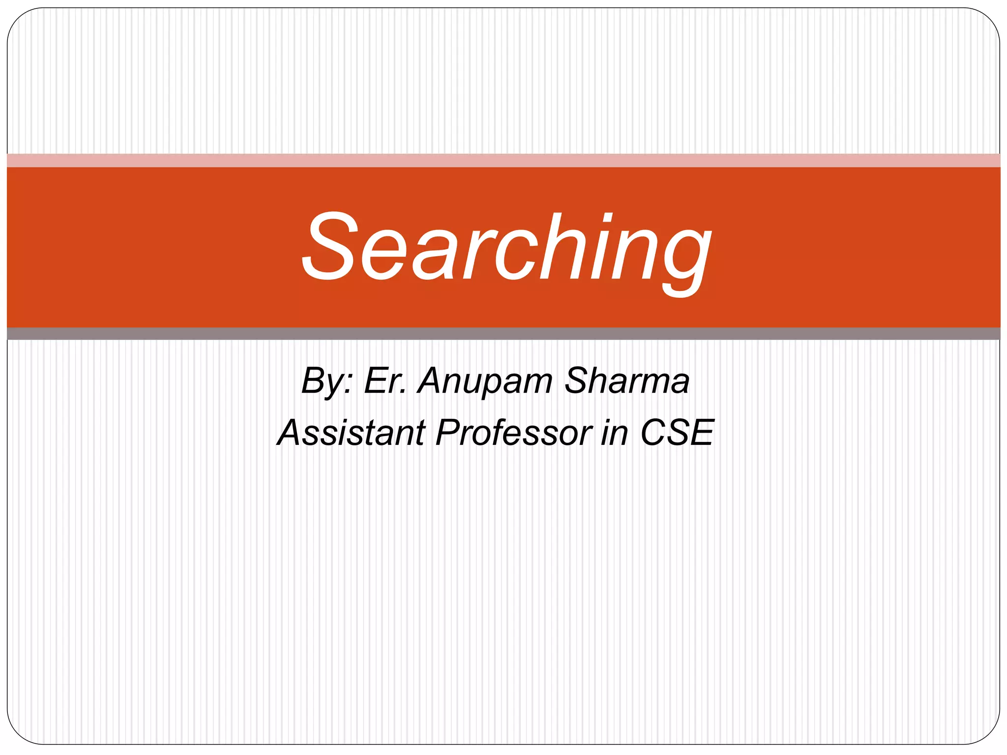 The document discusses linear and binary search algorithms.