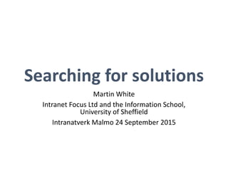 The document discusses challenges in information seeking and the limitations of current search systems, particularly in collaborative contexts where multiple users are involved. It highlights the cognitive barriers users face when searching for information and emphasizes the need for improved collaborative discovery and support for complex search tasks. Additionally, it touches on technological advancements and strategies for enhancing search functionalities in enterprise environments.