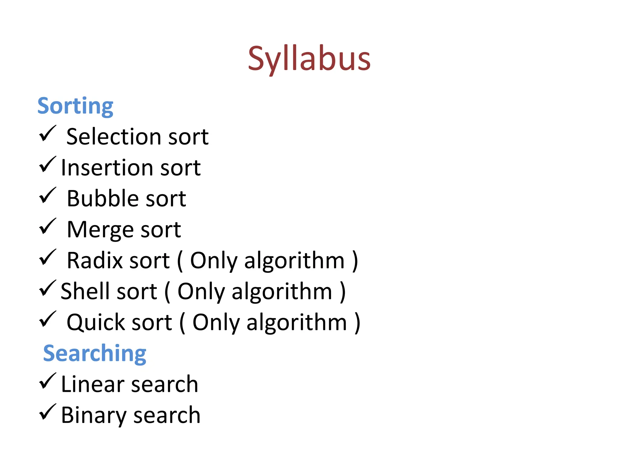 This document discusses various sorting and searching algorithms. It begins by listing sorting algorithms like selection sort, insertion sort, bubble sort, merge sort, and radix sort. It then discusses searching algorithms like linear/sequential search and binary search. It provides details on the implementation and time complexity of linear search, binary search, bubble sort, insertion sort, selection sort, and merge sort. Key points covered include the divide and conquer approach of merge sort and how binary search recursively halves the search space.