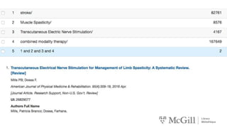 The document outlines a workshop on searching the literature in physical therapy, focusing on question formulation, search strategies, and effective use of Medline. It emphasizes the importance of evidence-based practice in formulating clinical questions and utilizing various databases to find relevant studies. Case scenarios involving patients with multiple sclerosis and stroke are used to illustrate the application of search strategies and question frameworks in clinical settings.