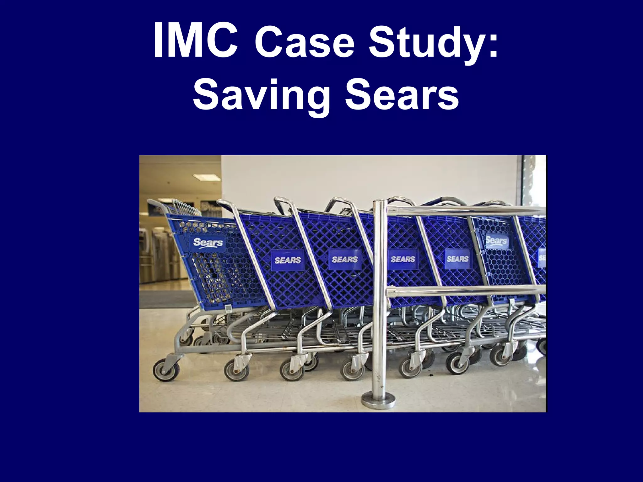 Sears has been struggling financially for several years, with declining same-store sales, customer alienation, and criticism of management's strategy. The document outlines Sears' current poor situation and proposes an integrated marketing communications campaign to reposition Sears as a vibrant retailer that is reinventing itself, with messaging focusing on competitive pricing, value, and an emphasis on drawing customers back into stores through advertising, promotions, and engaging media relations and internal communications. The goals of the campaign are to begin rebuilding Sears' brand and public perception as a retailer that is fighting back and adapting to today's competitive landscape.