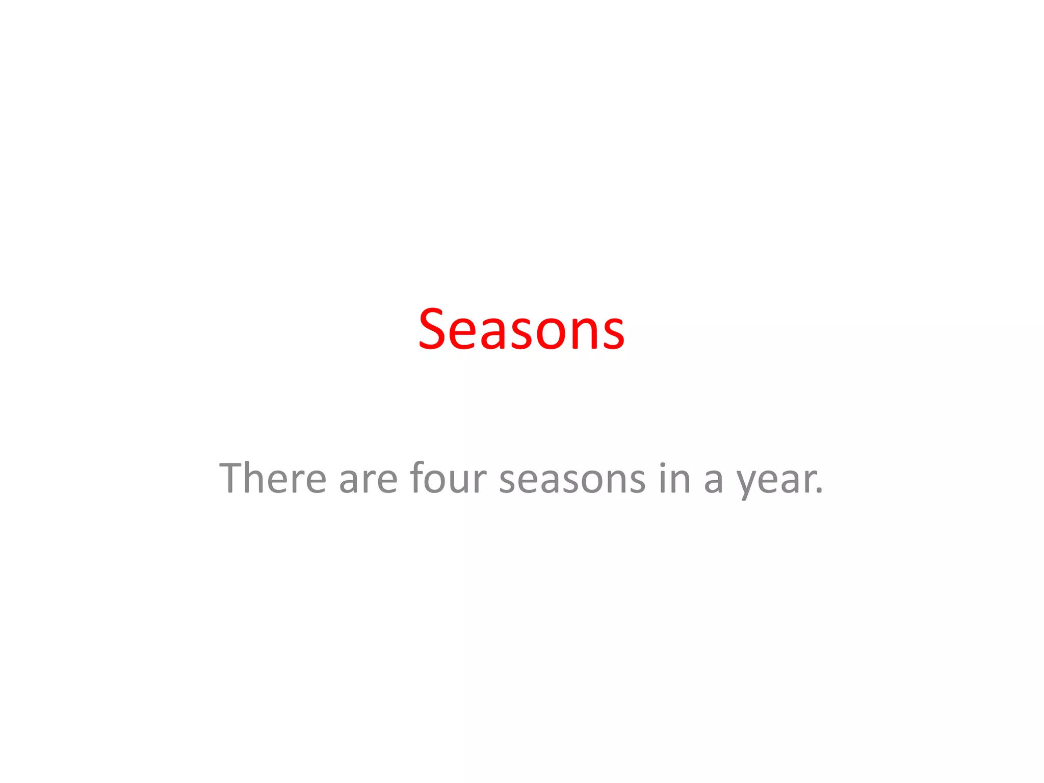 The document discusses the four seasons in a year - spring, summer, autumn and winter. It notes that there are four distinct seasons in an annual cycle.