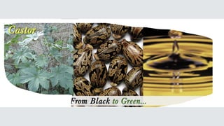 Sebacic acid derived from castor oil has a wide variety of applications and benefits. It is used in manufacturing biopolymides to provide properties like flexibility, strength, and lower melting temperatures. It is also used in polyesters due to its flexibility, chemical resistance, and strength. These polyesters are used in various coating applications like coils, architectural, and high solids paints. The document also discusses a refinery project in the Middle East that produces 62 million USD worth of sebacic acid extracted from castor oil for use in chemical, plastic, and pharmaceutical industries.