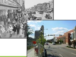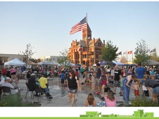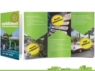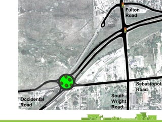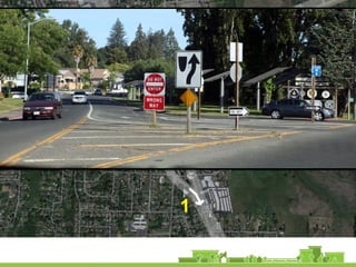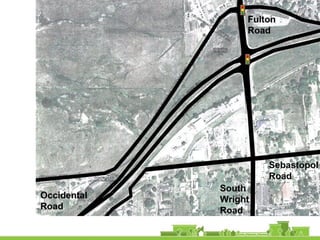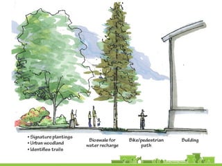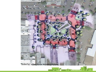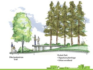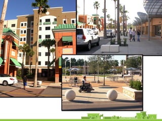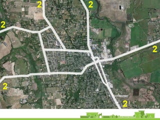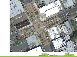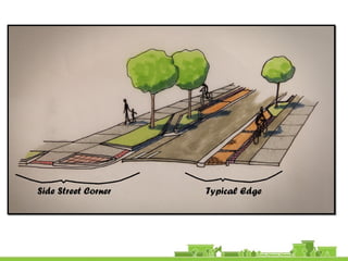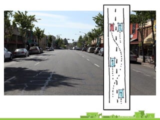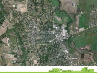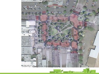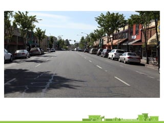The document outlines a community vision for Sebastopol, emphasizing the need for sustainable urban design and development that reflects local values and enhances walkability. Key topics include traffic management, green infrastructure, and public engagement in the design process, aiming to create a balanced mix of residential, commercial, and civic spaces. The proposals encompass short-term actions and long-term goals to revitalize downtown, improve transportation connections, and promote a vibrant, inclusive community.