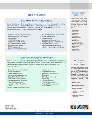Sirius Solutions, LLLP SEC reporting overview of service offerings in my SEC practice area.