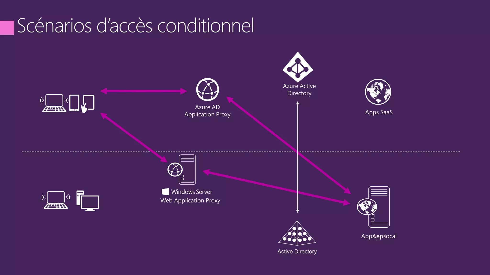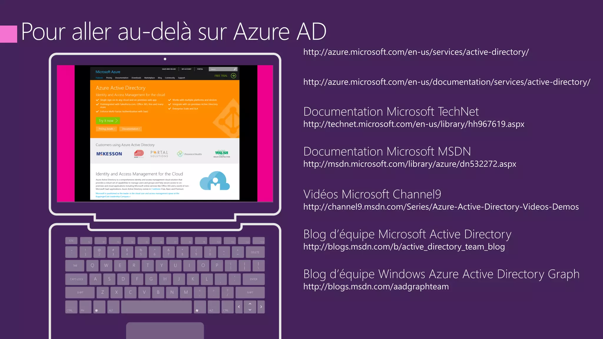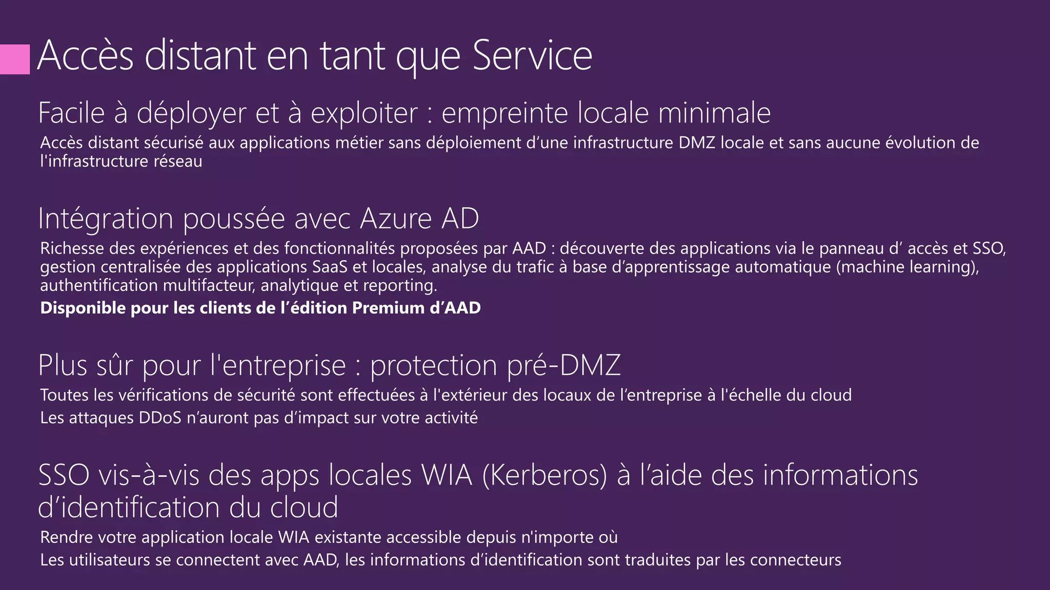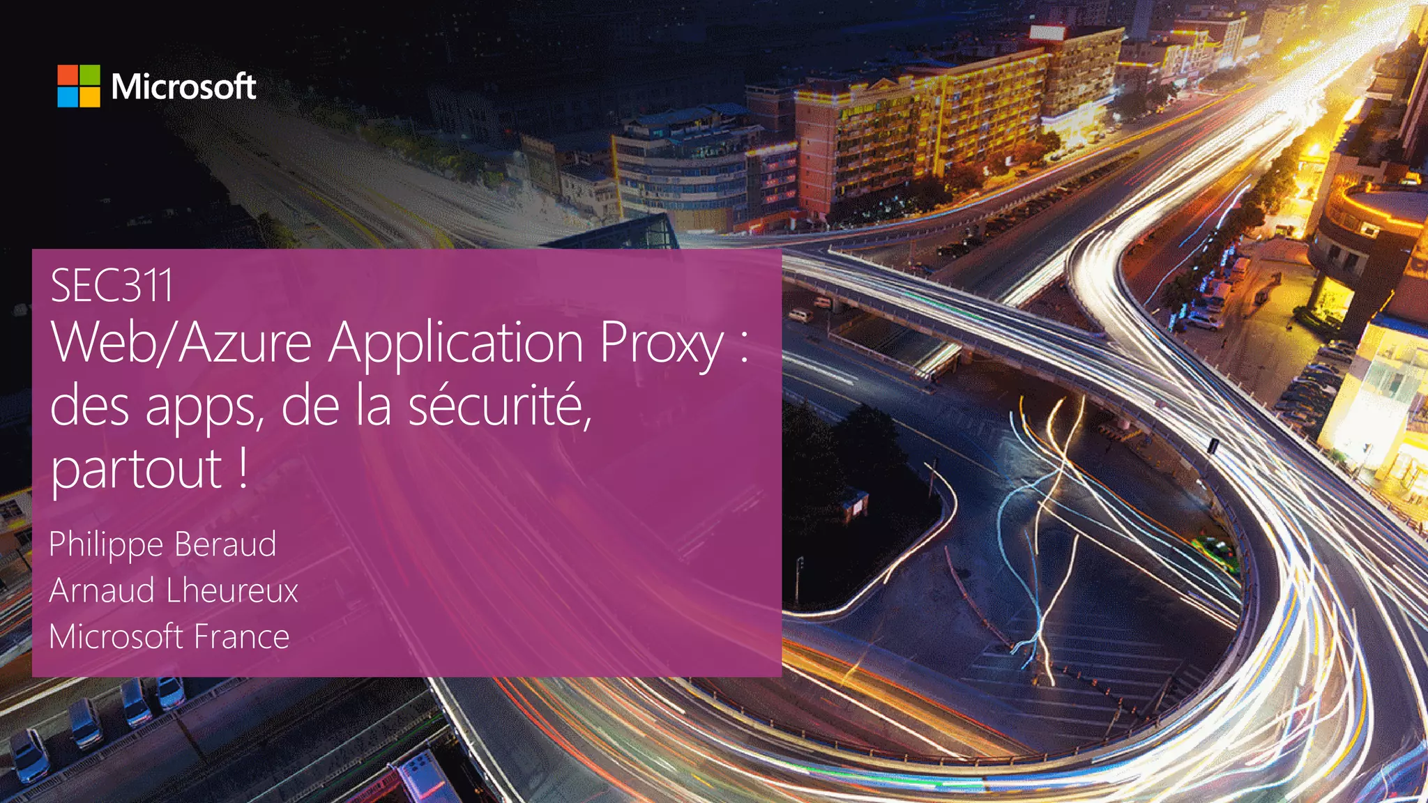 The document discusses the Microsoft Azure Application Proxy presented at the 2015 Tech Days event in France. It highlights the application's focus on security and accessibility for enterprise applications across various network zones, including DMZ. Additionally, it provides links to further resources and documentation related to Azure and application proxy technology.