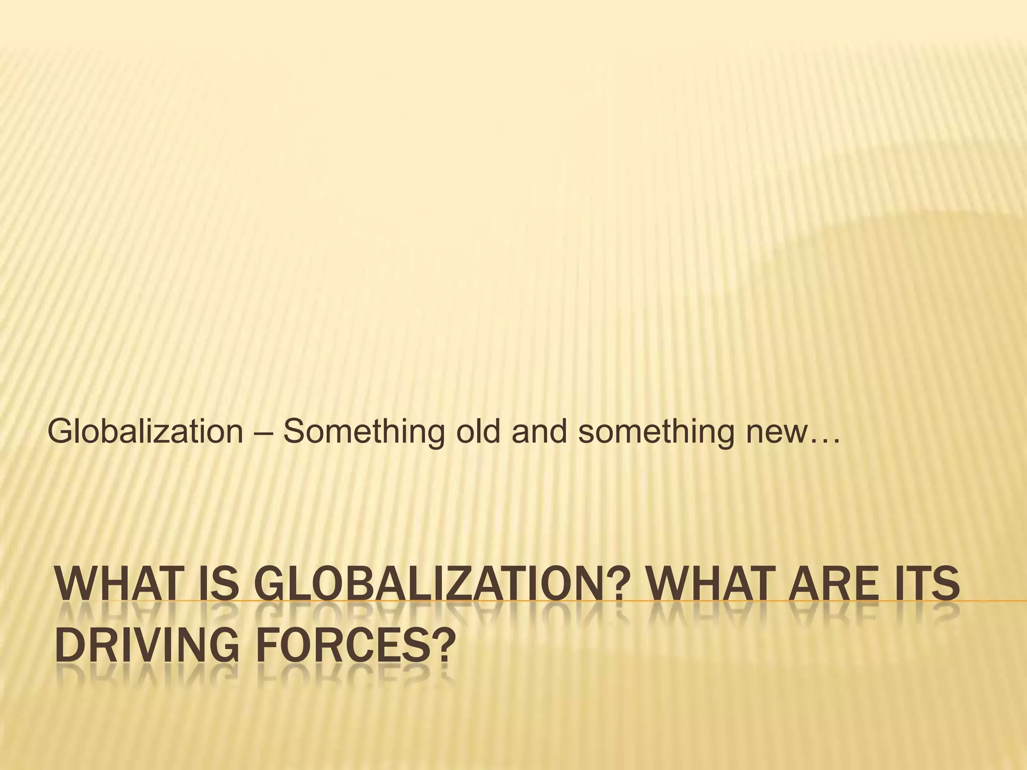 Globalization is defined as the increasing interconnectedness and integration of peoples and companies across the world. It has been driven by improvements in transportation, communication technologies, and the rise of transnational corporations operating in multiple countries. Specifically, developments like jet planes, container ships, fiber optic cables, the internet, and global companies have dramatically reduced the costs and barriers of moving people, goods, and information worldwide. This has connected economies and societies around the globe.