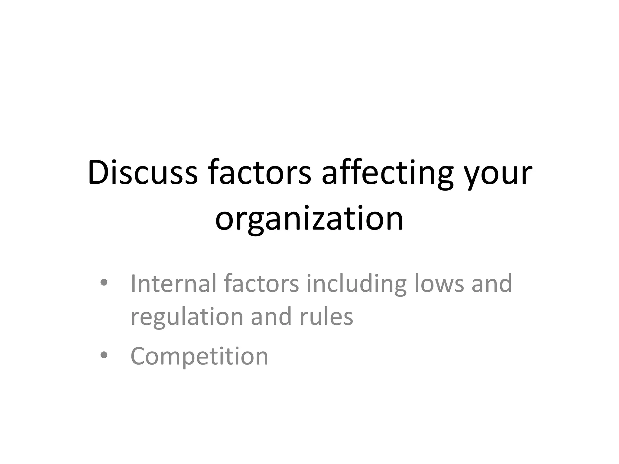 The document discusses various internal and external factors affecting an organization, including competition, economic challenges, and technological influences. It outlines the inputs, processes, and outputs related to medical management, emphasizing the importance of planning, organizing, controlling, and leading in order to enhance client satisfaction and accuracy. Additionally, it highlights the need for quality control and infection control within the organization.