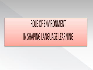 The document discusses several factors that influence second language acquisition, including the role of the learner's environment and innate characteristics. It describes learning as a process of habit formation, where learners receive positive reinforcement from speakers in their environment for correctly repeating and imitating the target language. The Contrastive Analysis Hypothesis proposes that learners will have an easier time acquiring aspects of the target language that are similar to their first language, and are more likely to make errors when the first and target languages have conflicting rules, known as negative transfer. However, later research found limitations to this hypothesis and determined that language acquisition is a more complex process than simple stimulus-response models suggest.