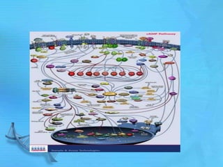The document discusses second messenger systems. It describes how second messengers relay signals from cell surface receptors to target molecules inside the cell. Some key points discussed include: