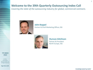 The TPI Index Global Sourcing Market Data report for Q2 2012 highlights an increase in total contract value (TCV) by 7% year-over-year, driven largely by a rebound in mega deals, despite an overall decline in the broader market on a year-to-date basis. Notably, the Asia-Pacific region showed significant growth, while EMEA experienced a marked decline. The report indicates that business process outsourcing (BPO) grew compared to the previous year, although new scope contracts diminished over the same period.