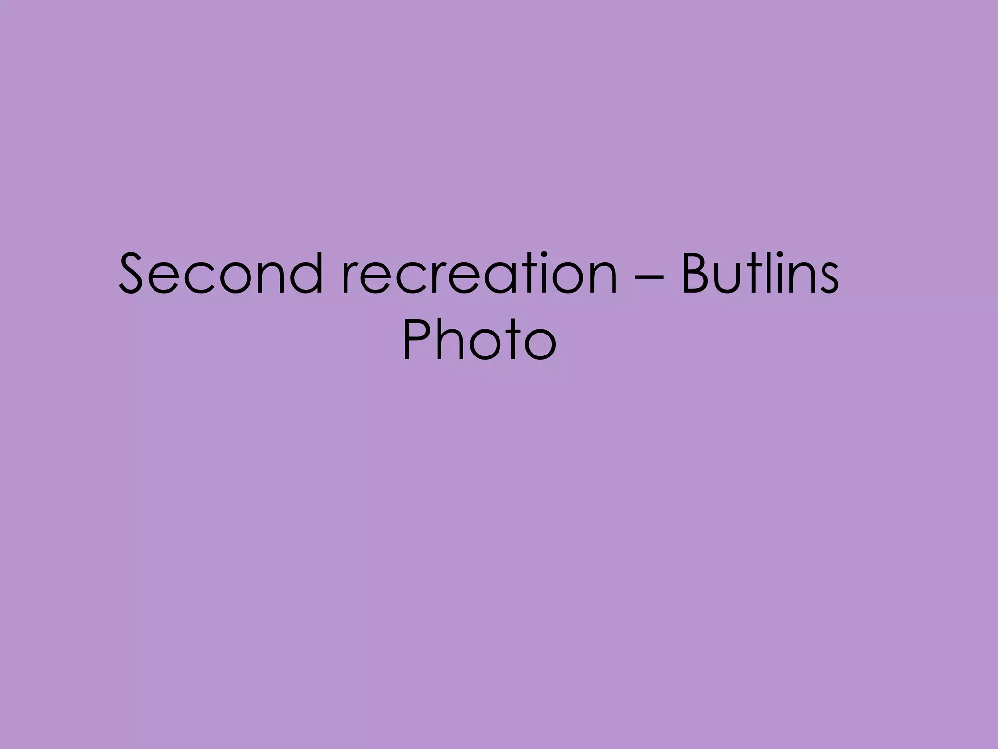 The document describes the steps taken to recreate a photo from Butlins using various Photoshop editing tools and effects. The recreation involved adjusting brightness, contrast, color balance, selective color, cloning elements, adding texture and grain, and applying blur and vignetting to match the tones, colors, and visual qualities of the original photo. The final steps were to place the original photo above the recreated photo and rotate the recreation upside down to create a mirroring effect.