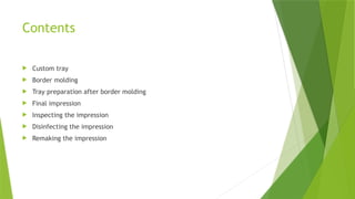 Before border molding , the custom trays is placed intraorally and checked for