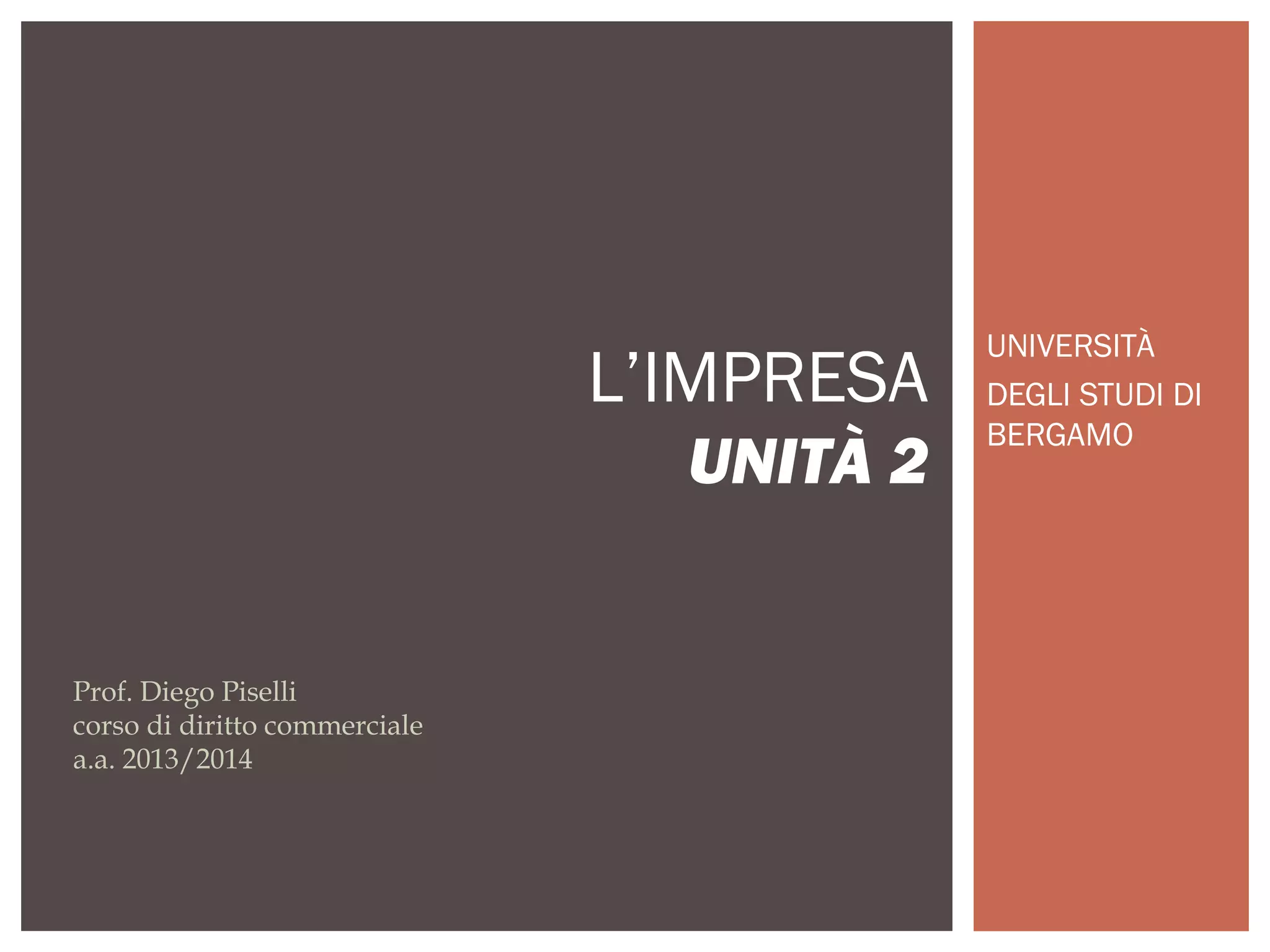 Il documento analizza la definizione di impresa nel diritto commerciale, evidenziando come l'imprenditore svolga un'attività economica organizzata per la produzione o lo scambio di beni e servizi. Viene discusso il concetto di imprenditore occulto e la sua fallibilità, oltre a delineare le categorie di imprenditori, come imprenditore commerciale e agricolo. Infine, si evidenzia la normativa applicabile e l'interazione tra attività imprenditoriale e intervento pubblico.