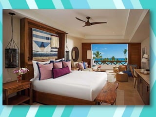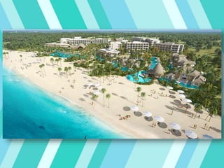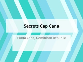 This document provides information about Secrets Cap Cana resort located in Punta Cana, Dominican Republic. It describes the property's amenities including suites, restaurants, bars, pools, beaches and activities. The resort is all-inclusive and located within an exclusive gated community offering luxury accommodations and facilities like golf courses and equestrian centers. Photos of the property and details of flight and room options are also provided.