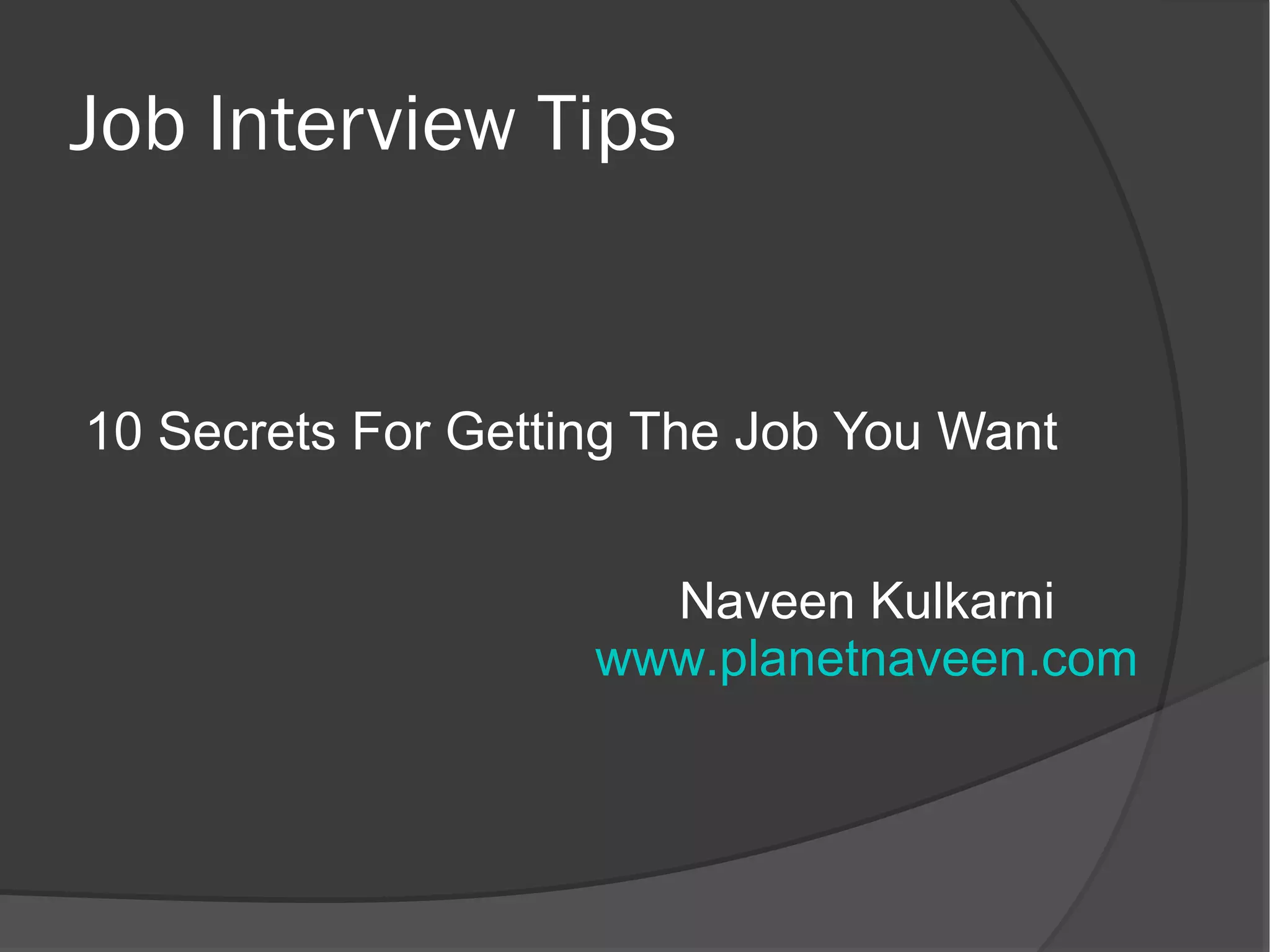 This document provides 10 tips for acing a job interview: