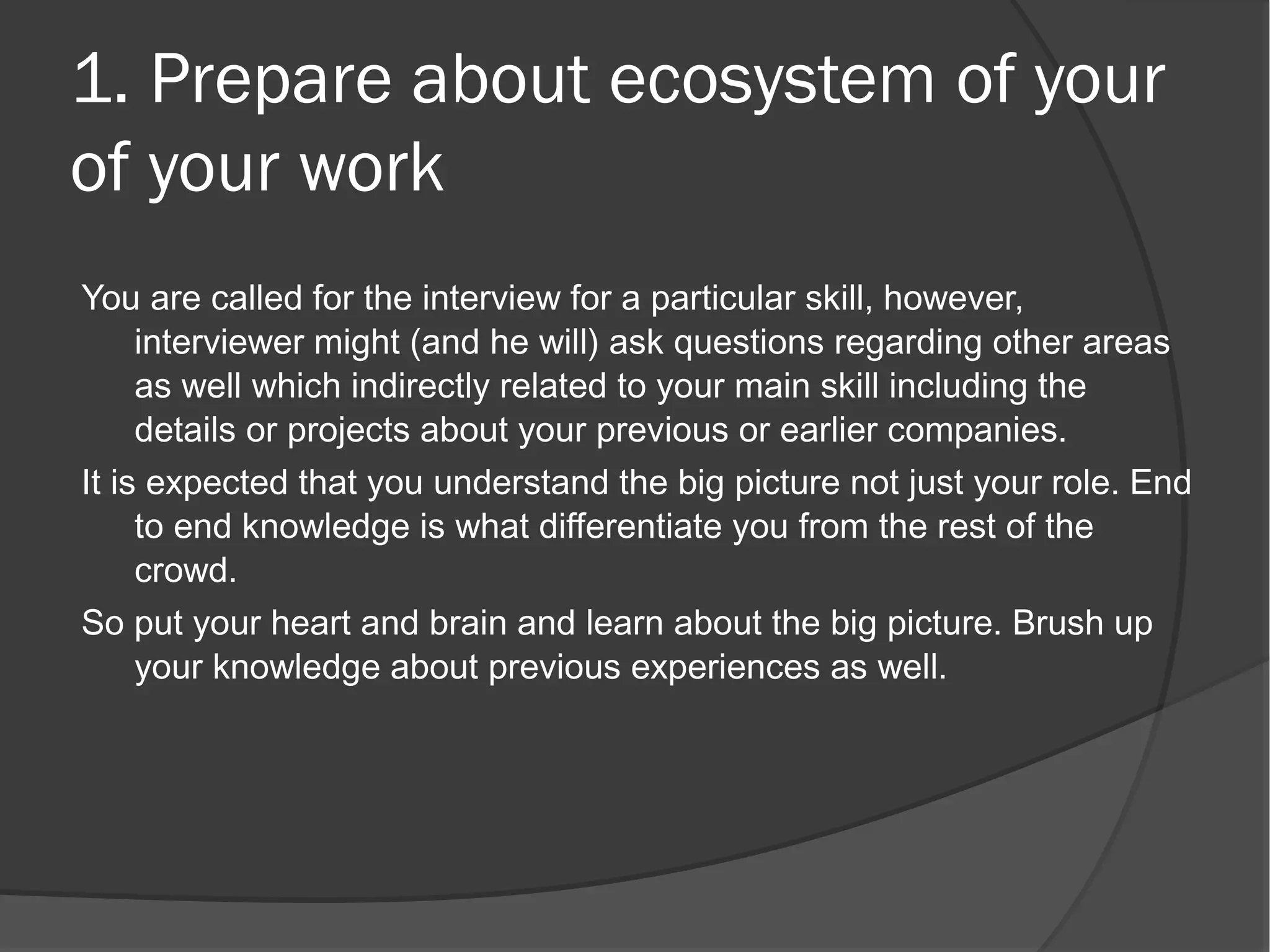 1. Prepare knowledge of the company and your role's context within their ecosystem.