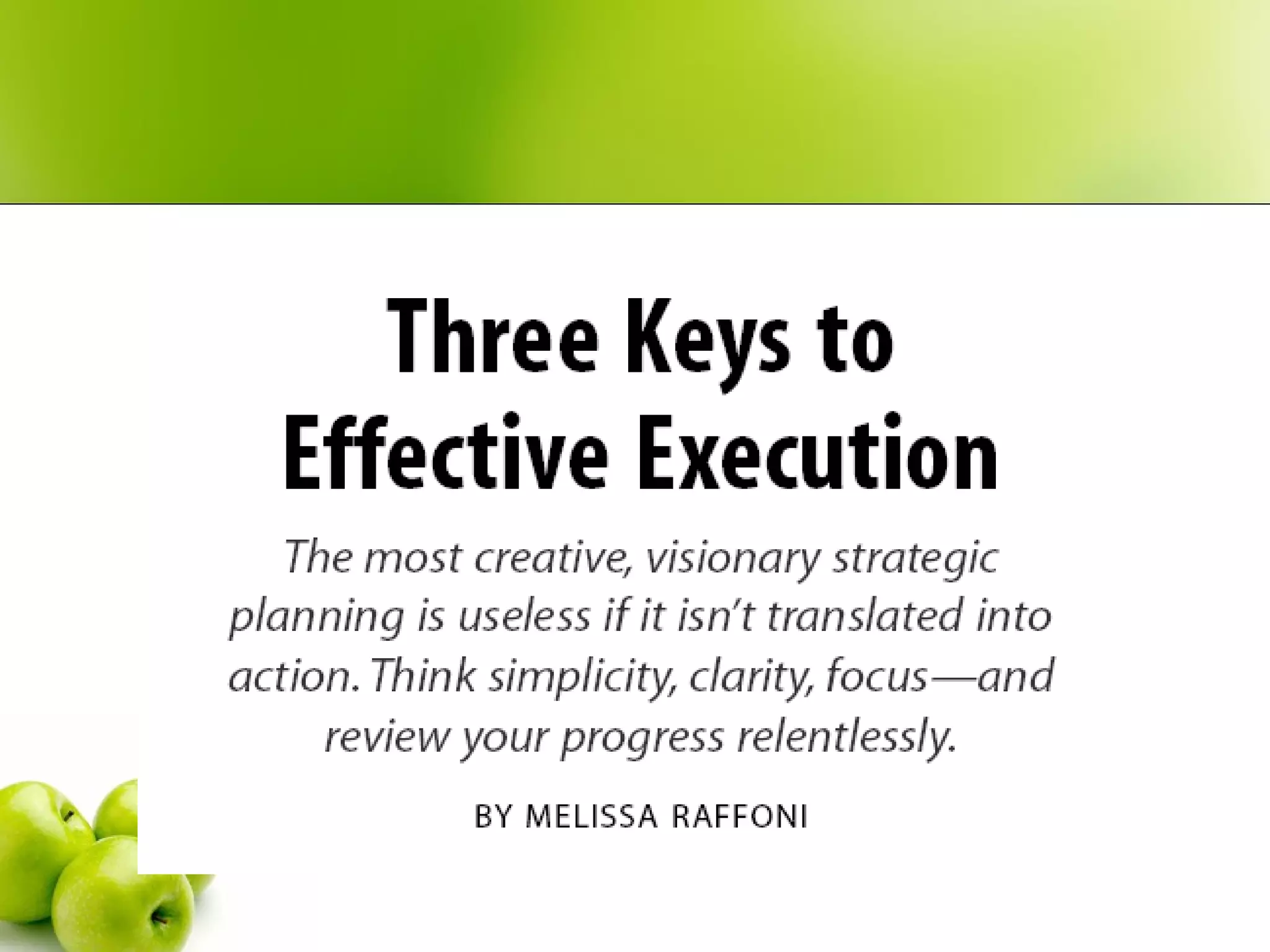 Execution is key to achieving goals and requires commitment through disciplined daily action. Successful execution involves setting clear goals, having the right people to implement the strategy, and linking rewards to outcomes. It is a systematic process that demands passion and rigor by questioning plans, following through, and ensuring accountability. Most importantly, execution requires taking action - the most powerful word for achievers.
