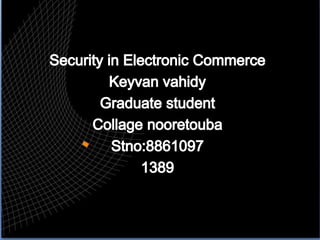 1. Cryptography is used to provide security in electronic commerce by ensuring privacy, authenticity, and preventing forgery, alteration, eavesdropping and tracing of messages.