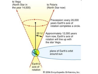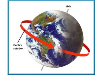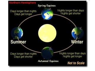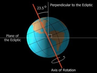 The document summarizes key concepts about the Earth's relationship to the sun and moon from a 6th grade science textbook. It discusses how ancient Greeks like Aristotle were able to determine the Earth was spherical by observing shadows on the moon. It also explains the Earth's axis of rotation, its tilted axis causing seasons, and defines solstices and equinoxes as the days when the sun is furthest or directly overhead at the equator.