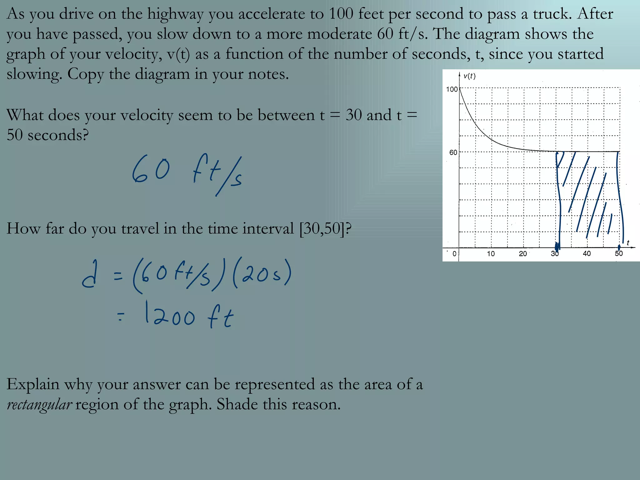 ![As you drive on the highway you accelerate to 100 feet per second to pass a truck. After you have passed, you slow down to a more moderate 60 ft/s. The diagram shows the graph of your velocity, v(t) as a function of the number of seconds, t, since you started slowing. Copy the diagram in your notes. What does your velocity seem to be between t = 30 and t = 50 seconds? How far do you travel in the time interval [30,50]? Explain why your answer can be represented as the area of a rectangular region of the graph. Shade this reason.](https://image.slidesharecdn.com/section-13-1221506656867348-8/75/Section-1-3-Definite-Integrals-1-2048.jpg)
