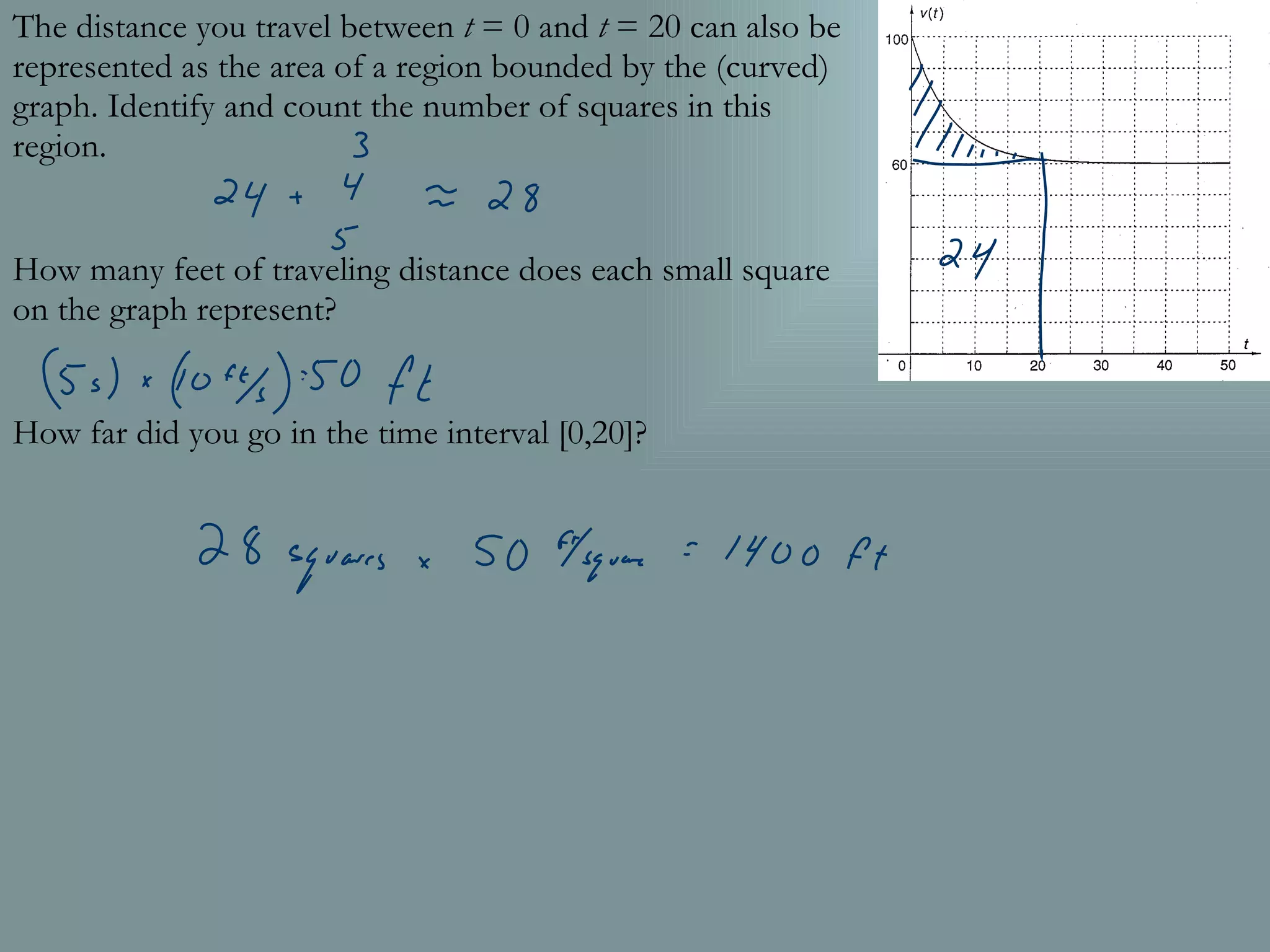 ![The distance you travel between t = 0 and t = 20 can also be represented as the area of a region bounded by the (curved) graph. Identify and count the number of squares in this region. How many feet of traveling distance does each small square on the graph represent? How far did you go in the time interval [0,20]?](https://image.slidesharecdn.com/section-13-1221506656867348-8/75/Section-1-3-Definite-Integrals-2-2048.jpg)