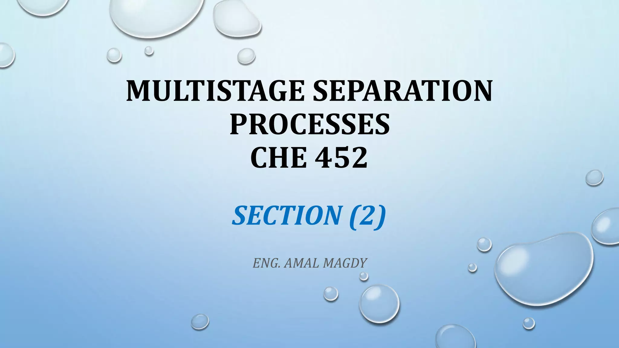 1. The document discusses multistage separation processes and different types of distillation operations including simple distillation, flash distillation, and multistage distillation.