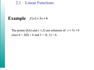 This document discusses linear functions and their key characteristics: