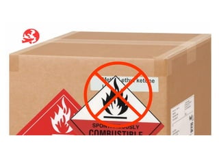 This document discusses the marking and labeling requirements for shipping dangerous goods. It aims to help readers recognize package markings, identify hazard and handling labels, and apply labeling requirements correctly. Specific topics covered include the purposes of markings and labels, types of markings, specifications and applications of hazard and handling labels, and exceptions for packages containing excepted quantities of dangerous goods.