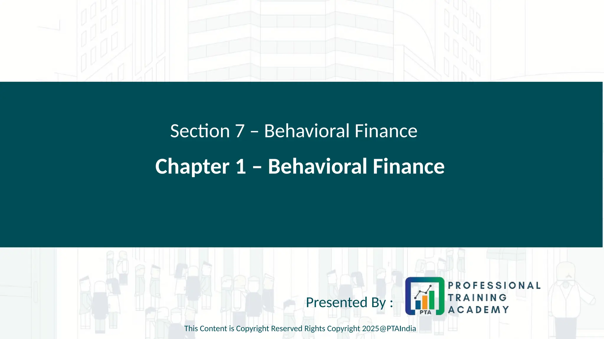 Section 7 - Chapter 1 - Behavioral Finance - Presented by Rohan Sharma - The CMT Coach - Chartered Market Technician CMT Level 1 Study Material - CMT Level 1 Chapter Wise Short Notes - CMT Level 1 Course Content - CMT Level 1 2025 Exam Syllabus Visit Site : www.learn.ptaindia.com and www.ptaindia.com